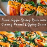 Get playful with presentation by slicing the rolls diagonally to reveal their colorful interiors and arranging them on a long platter with dipping bowls of peanut sauce spread along the side. For gatherings, set up a DIY station where guests can customize their rolls with extra veggies, herbs, or even proteins like tofu or shrimp.
