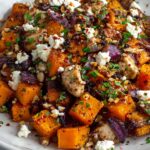 This Maple Roasted Pumpkin recipe combines tender, caramelized pumpkin pieces with sweet maple syrup and crunchy walnuts, enhanced by bold spices and creamy Danish feta cheese. Perfect as a flavorful side dish or a light vegetarian meal, it offers a delightful balance of sweet, savory, and spicy notes.