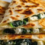 These Spinach Feta Quesadillas are a quick and delicious vegetarian meal, combining sautéed fresh spinach with creamy feta and melted mozzarella cheese, all wrapped in crispy golden tortillas. Perfect for a satisfying lunch or dinner, they come together in just 20 minutes and can be served with your favorite dipping sauces like sour cream, salsa, or tzatziki.
